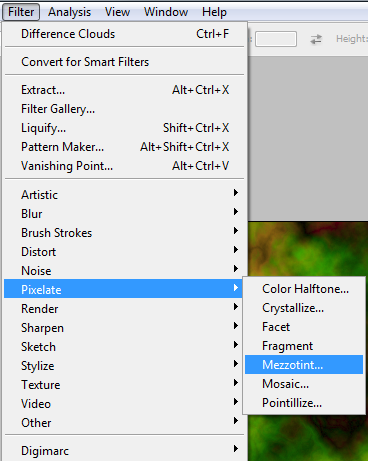 Filter > Pixilate > Mezzotint > Pick Short Strokes