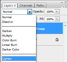 Vervolgens moeten we de gecopieerde layer op "Lighten" zetten